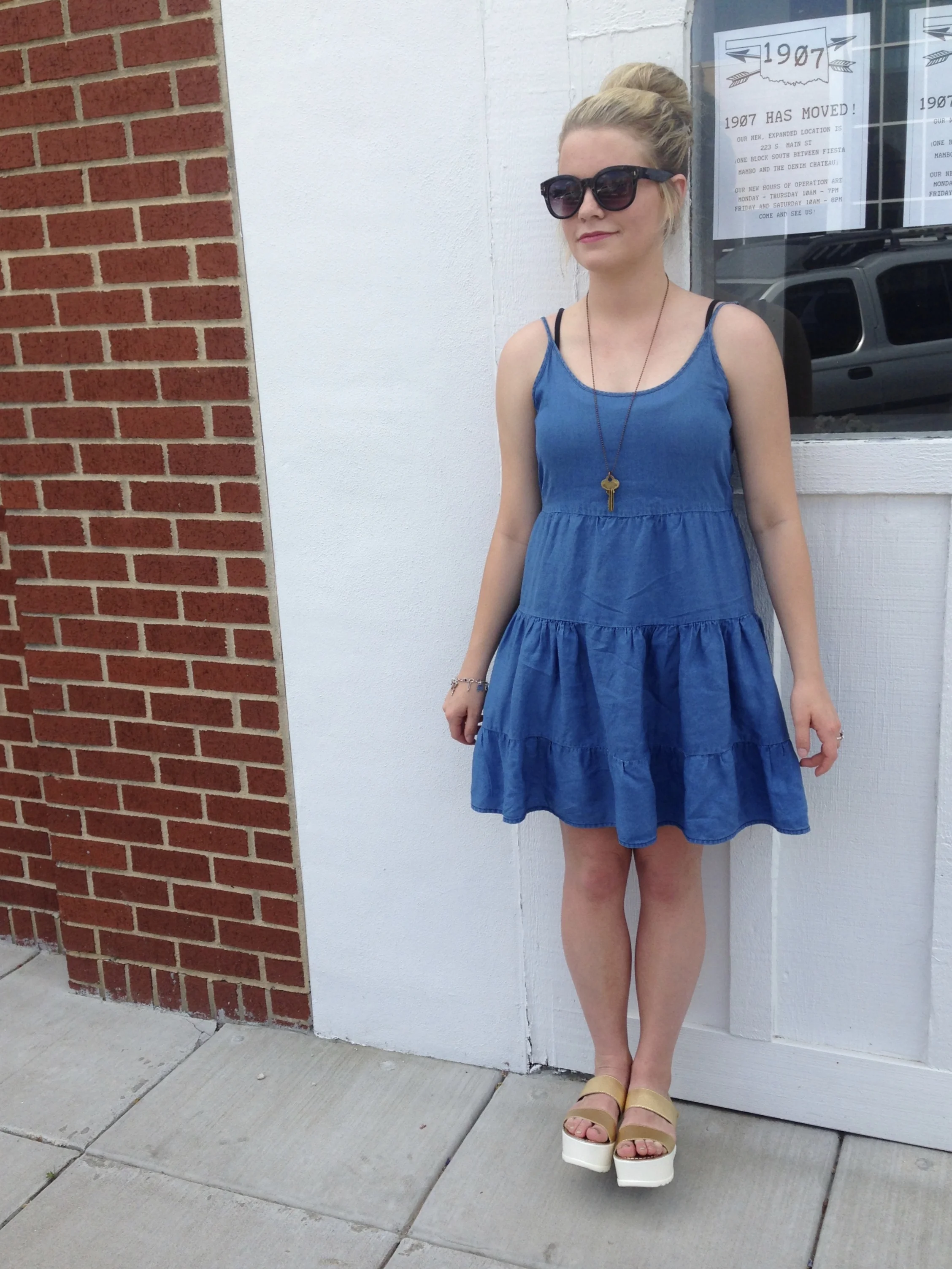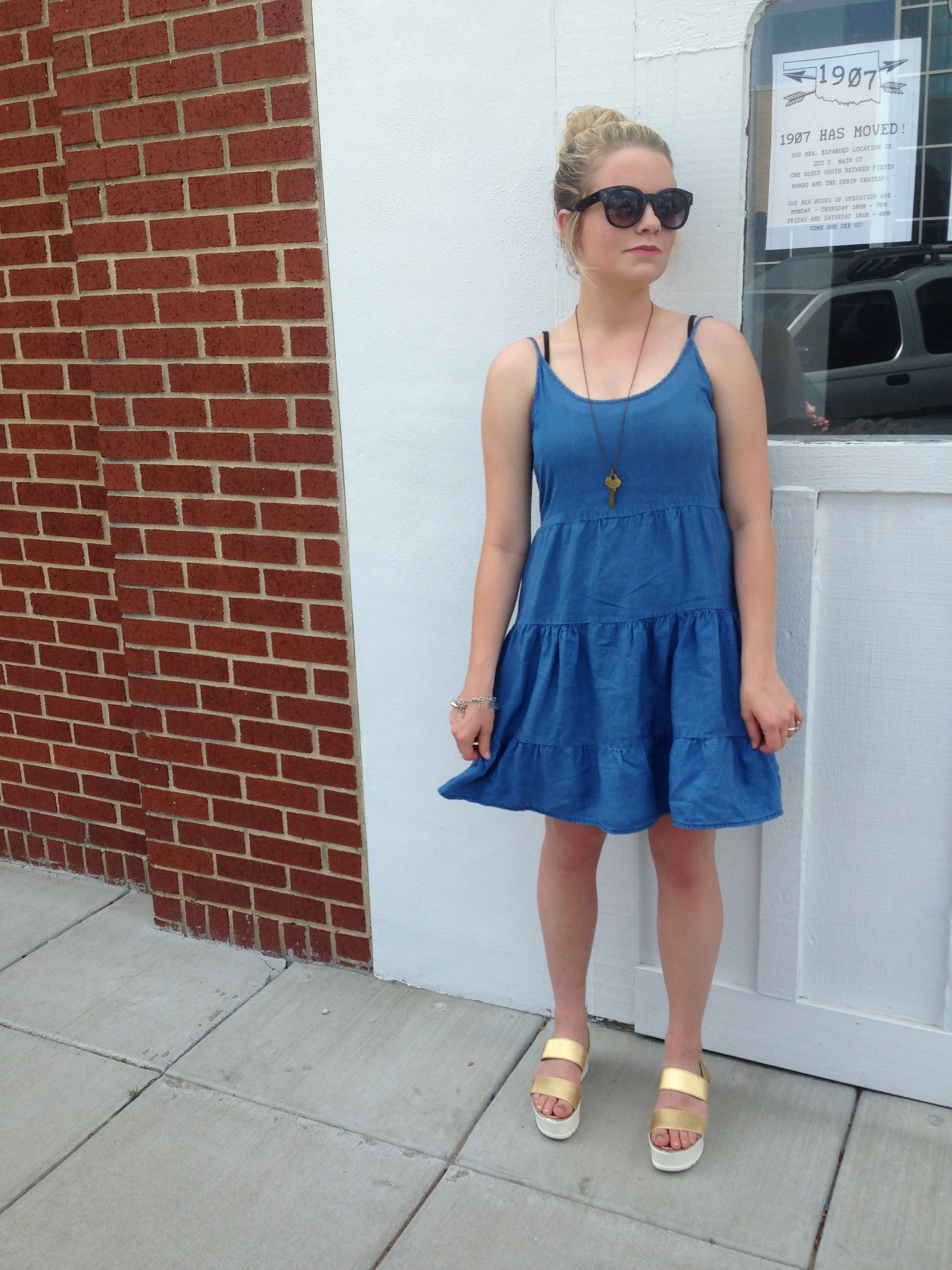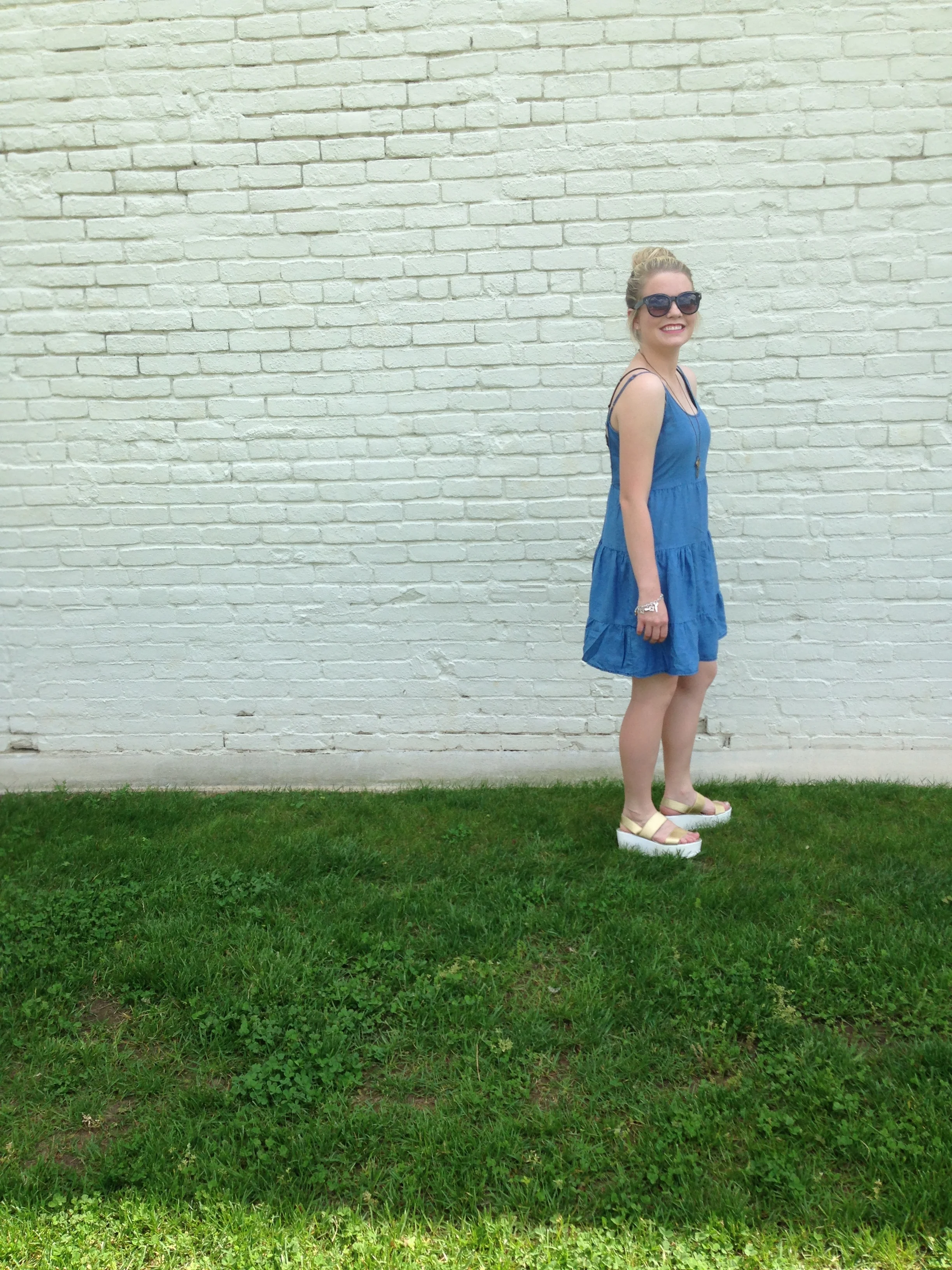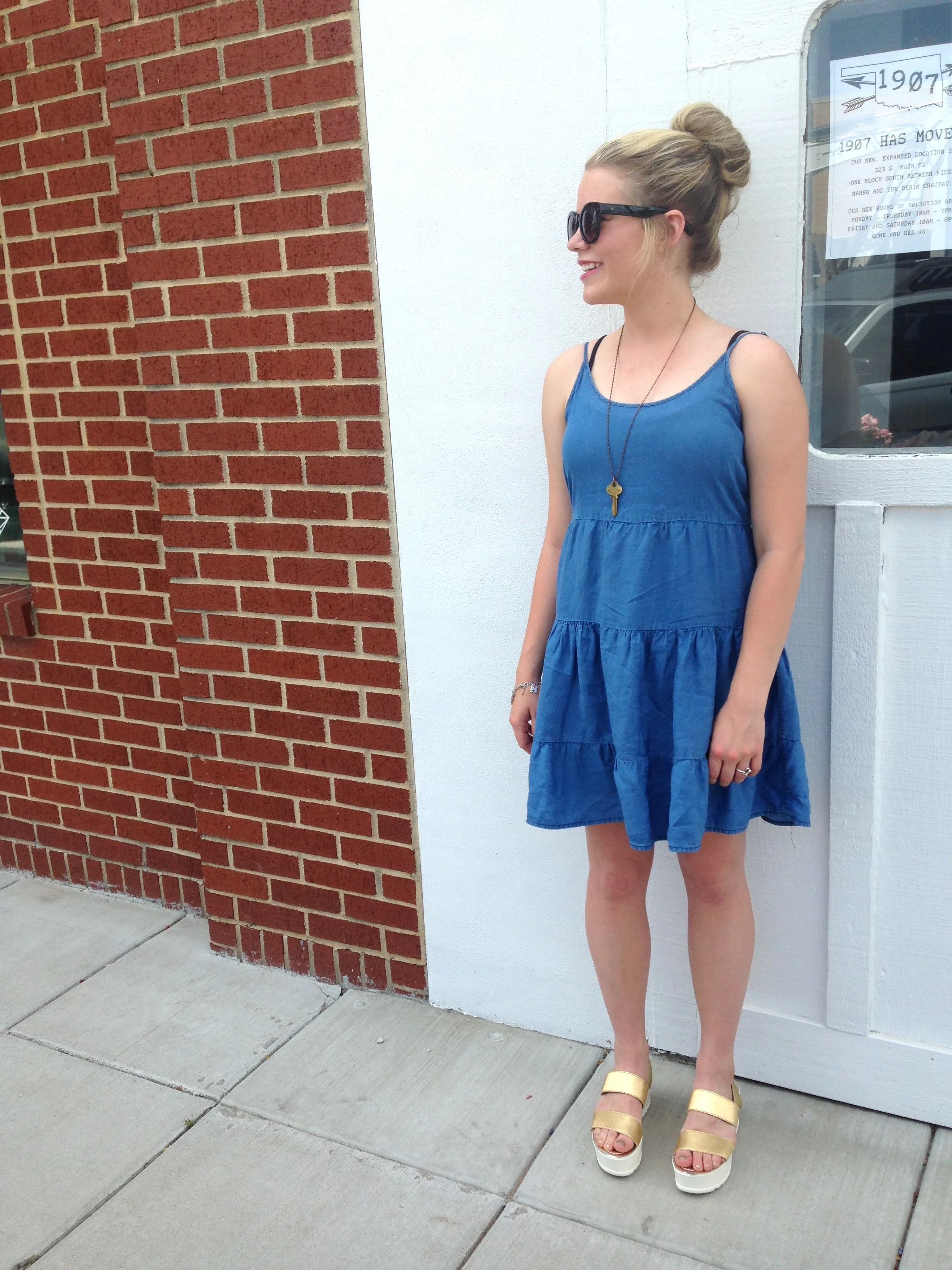 DRESS:: MOLLY GREEN SUNGIES:: LOFT GOLD PLATFORM SANDALS:: SHOPPRICLESS