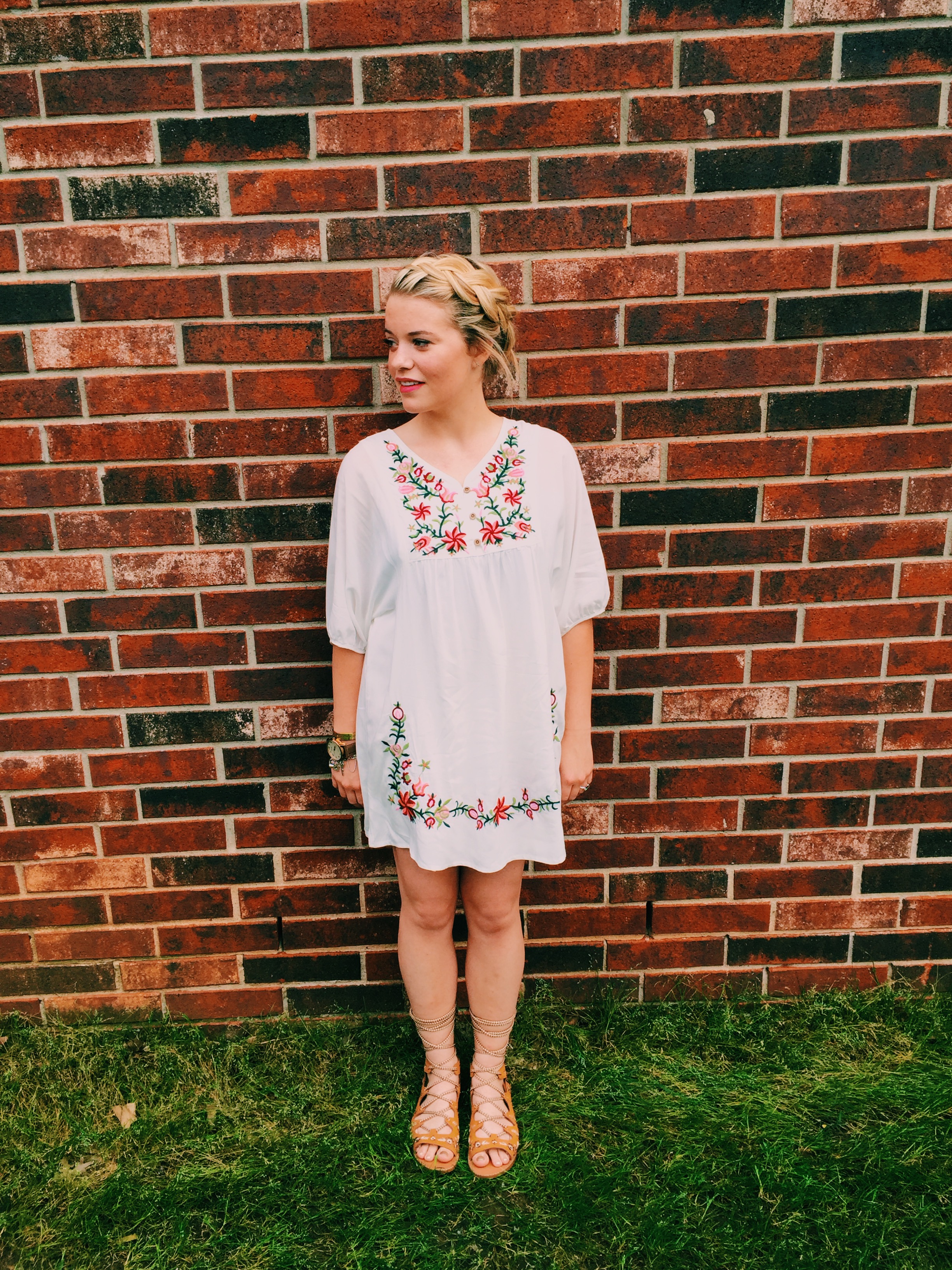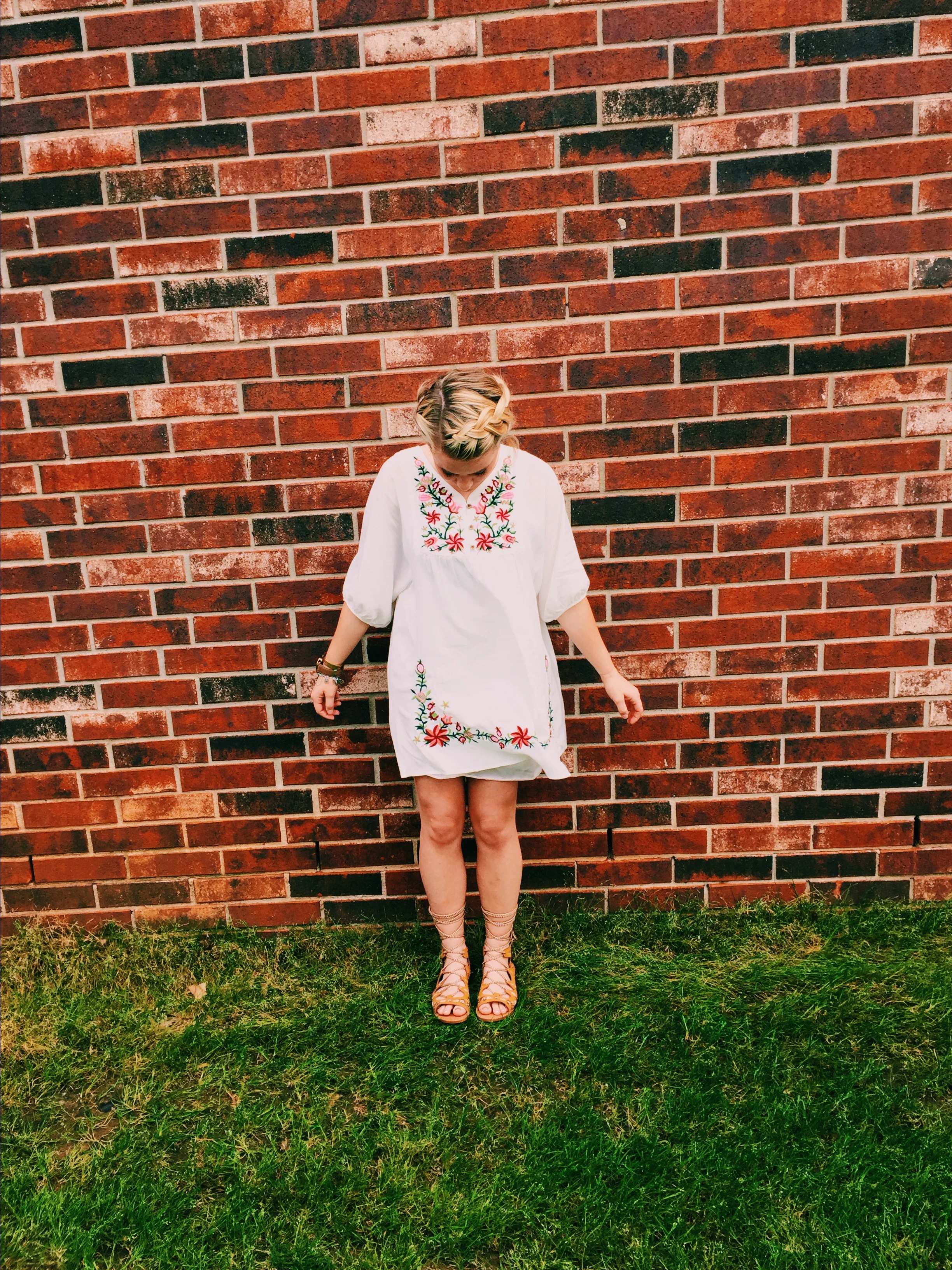 One big thing I stress when buying clothes is versatility, i.e. can you wear it more than once?/are you able to wear it in many different situations? If the answer to either of these questions is "no," I normally hesitate to purchase an item. This dress can be worn in fifty-thousand different scenarios! Brunch party? Wear this dress. Pool day? Wear this dress. Sunburnt from the aforementioned pool day? You're in luck! This dress is made of the lightest fabric ever so it doesn't rub or irritate your skin.