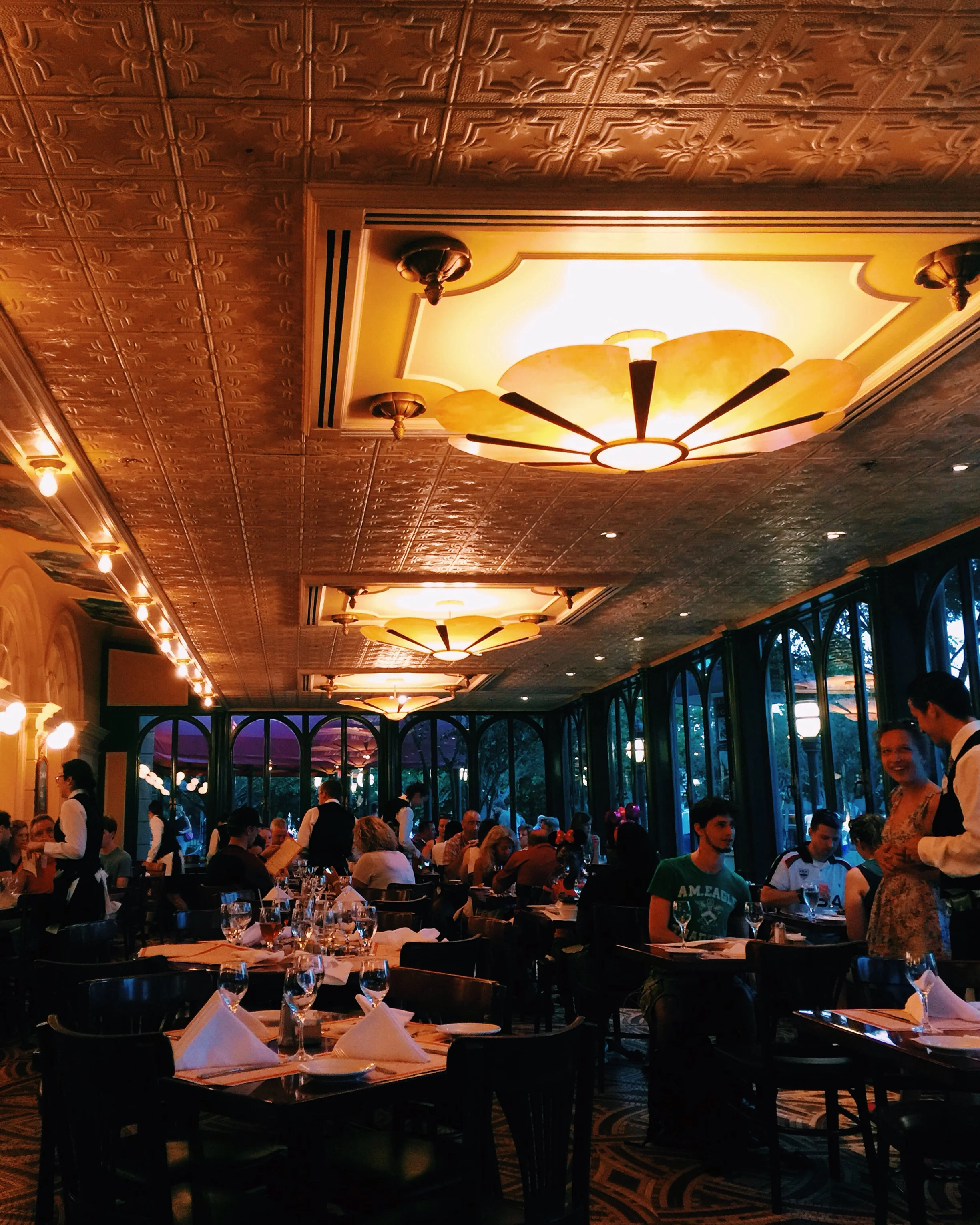 Chefs de France is without a doubt, absolutely, rain or shine, my favorite restaurant in all of Disney. The food is beyond delicious (I ordered the duck), and the waiters are flawless (and literally from France). It's nestled in the heart of Epcot, right by the lake with a perfect view of nighttime fireworks.