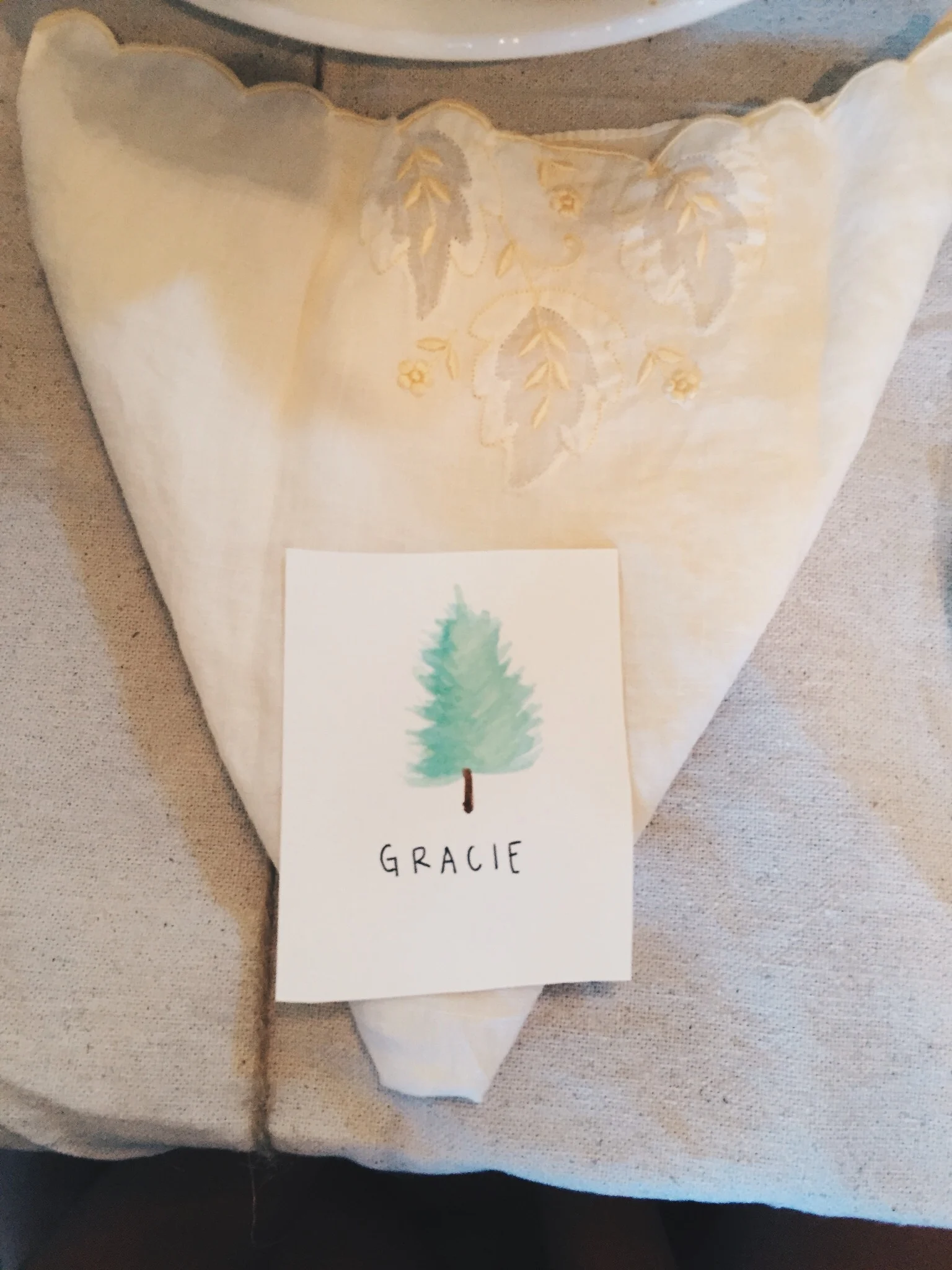 I love tiny details because they pull things together so well and really give them a finished look, so I watercolored little food-tags for each thing that I made. I also watercolored placecards for each girl.