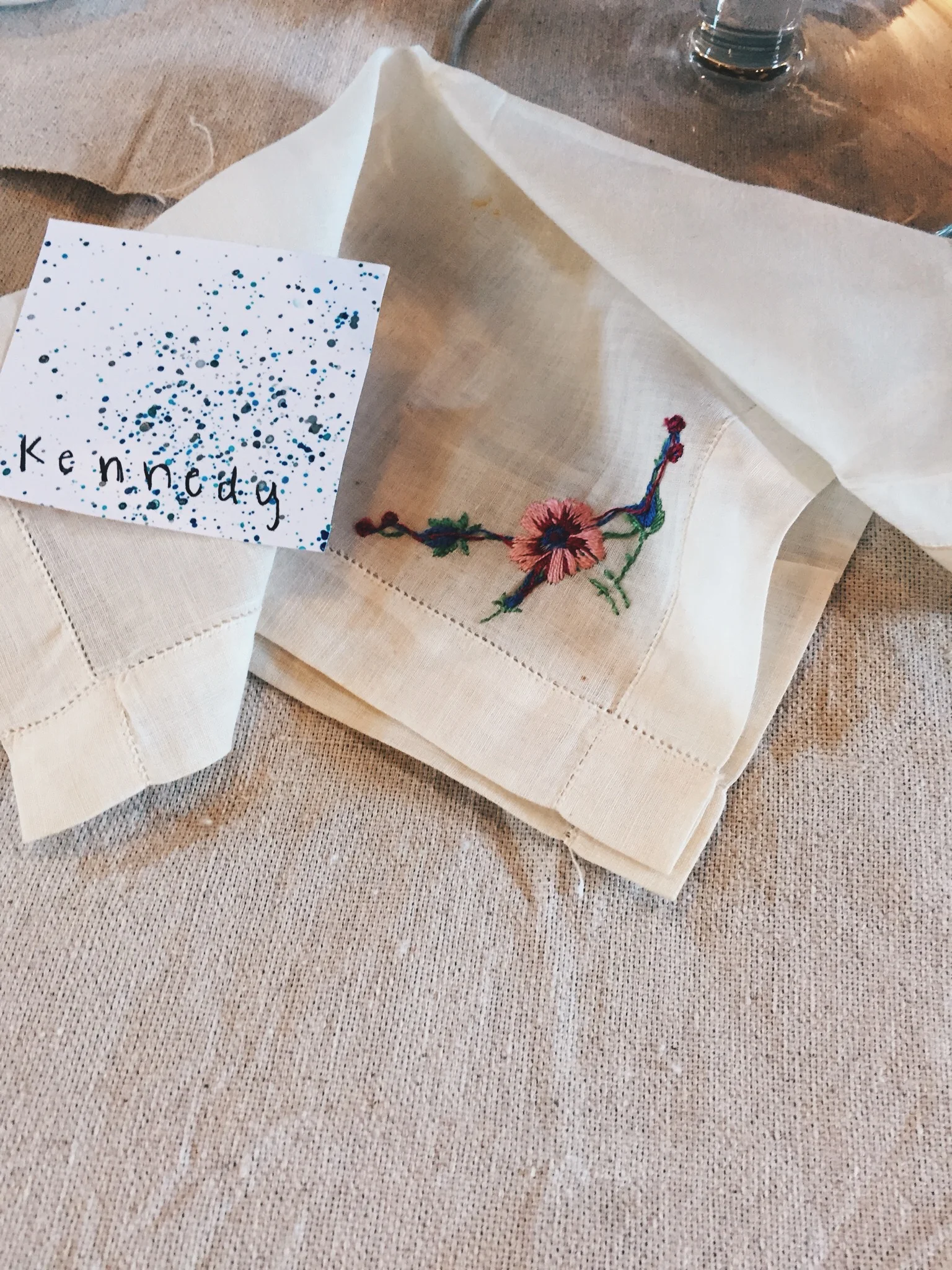 My mom has collected old handkerchiefs forever, so we pulled out some mismatching ones for the party. They were literally icing on the brunch-cake!